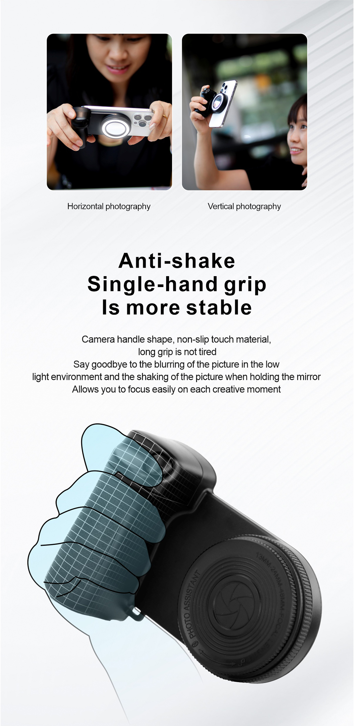 ★ Dual-Mode Base: Use it firmly on your desk as a holder or hold it securely in the ergonomically designed handle for comfortable, stable shooting.