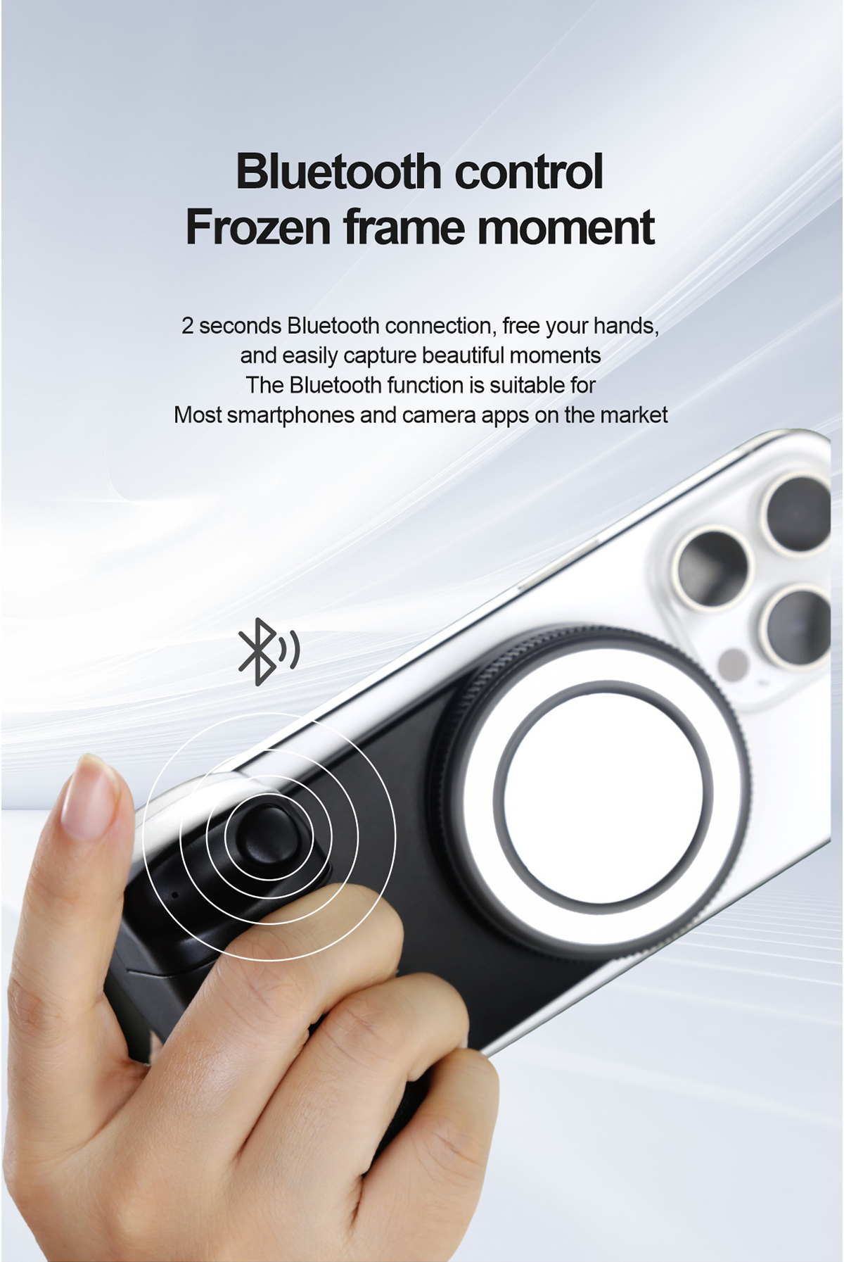 ★ Magnetic Bluetooth Shutter:  15m-wide-range bluetooth shutter. Wirelessly control your camera with a snap-on magnetic remote.