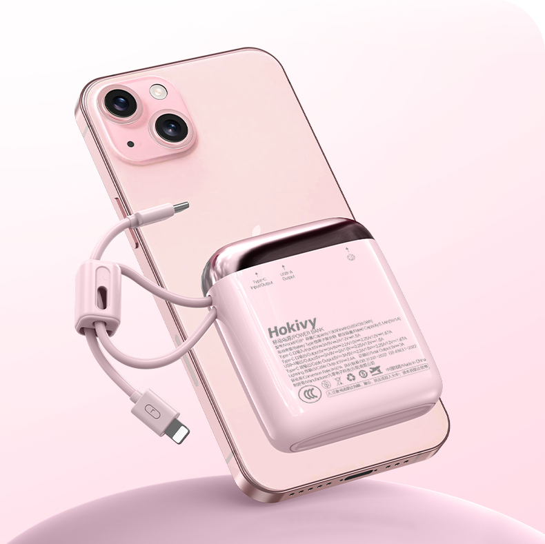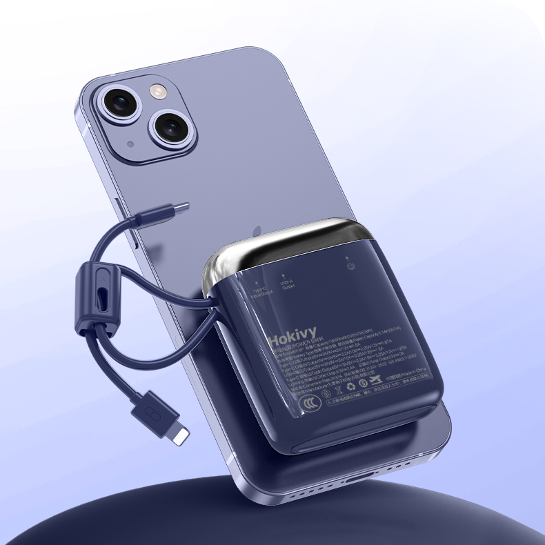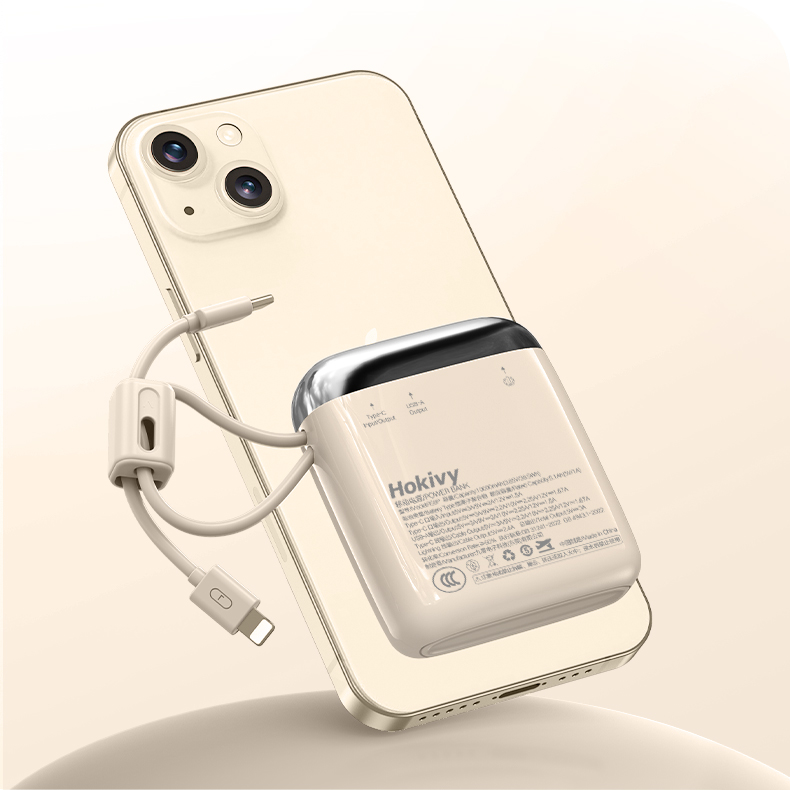 Dual Built-in Cables: Features integrated Type-C and Lightning cables, providing instant charging for most Android and Apple devices without the hassle of extra cords.