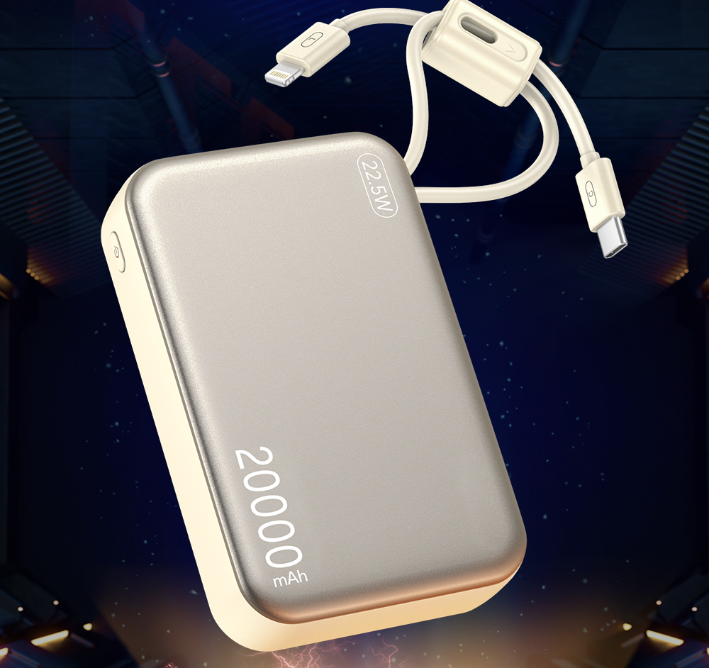 ★ Dual Built-in Cables: Features integrated Type-C and Lightning cables, providing instant charging for most Android and Apple devices without the hassle of extra cords.