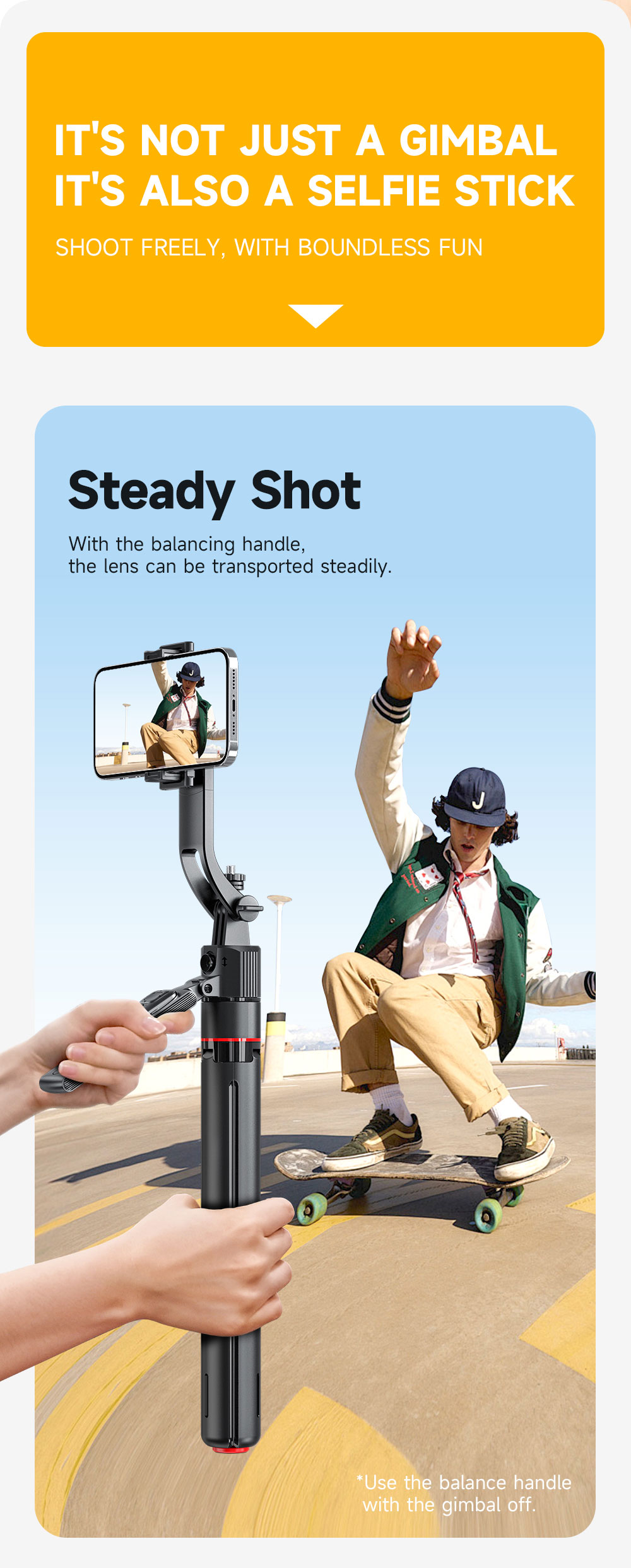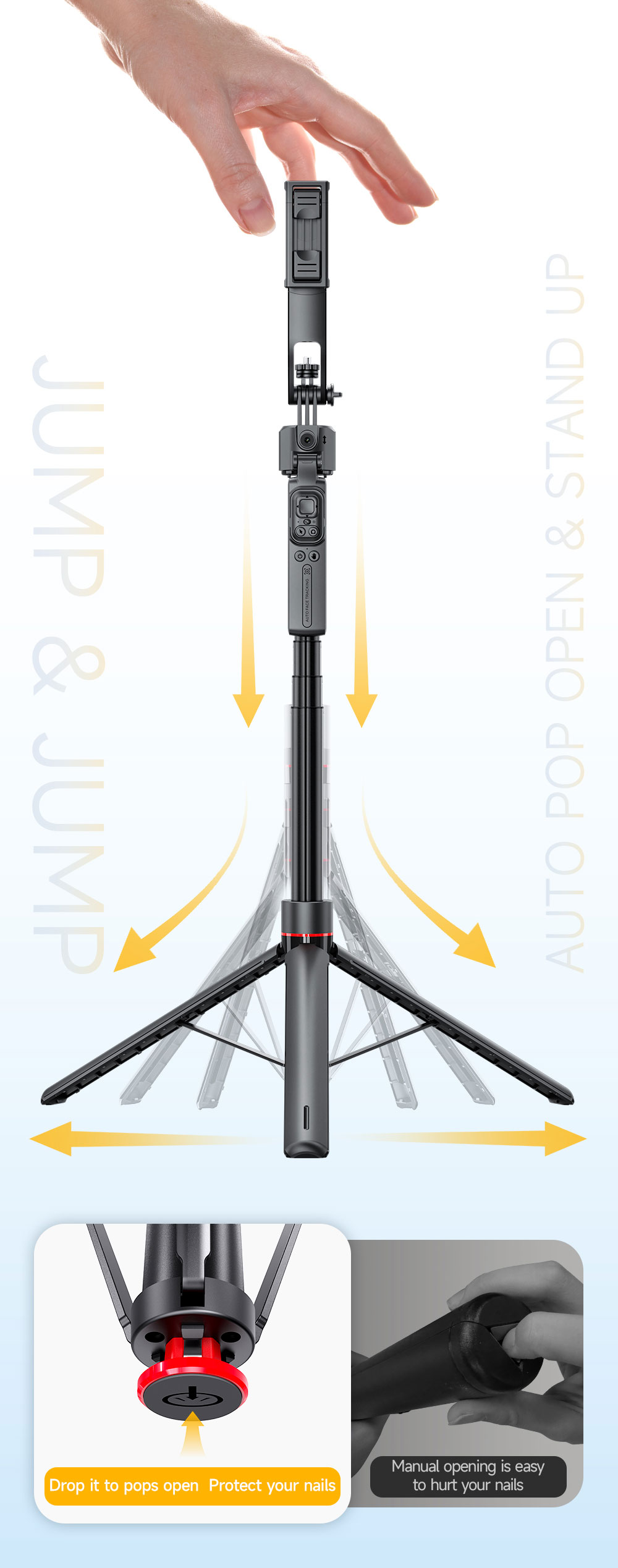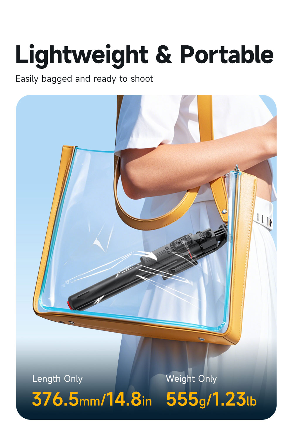 ★ Extended Reach, Stable Shots: The sturdy aluminum alloy stick extends from a compact 37.6cm to a full 176cm, giving you flexible shooting angles while maintaining stability for smooth, professional-looking video.
